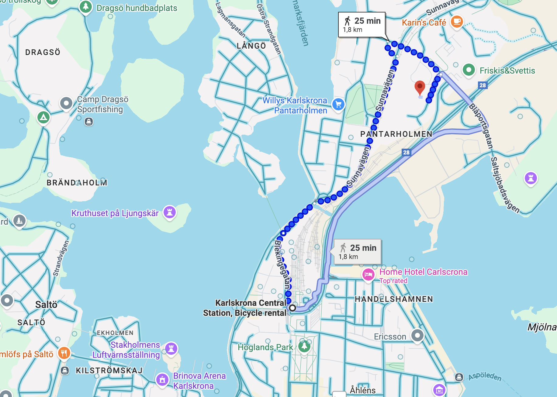 The maps above show (left): route from BTH to the Welcome Reception at VPSL or (right) route from Karlskrona Central Station to the Welcome Reception at VPSL. It is also possible to take the bus from the BTH or the station to the bus stop Polhemsgatan and walk the last few minutes on foot.