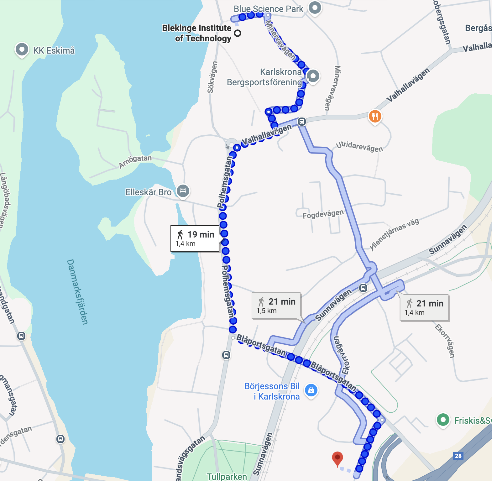The maps above show (left): route from BTH to the Welcome Reception at VPSL or (right) route from Karlskrona Central Station to the Welcome Reception at VPSL. It is also possible to take the bus from the BTH or the station to the bus stop Polhemsgatan and walk the last few minutes on foot.